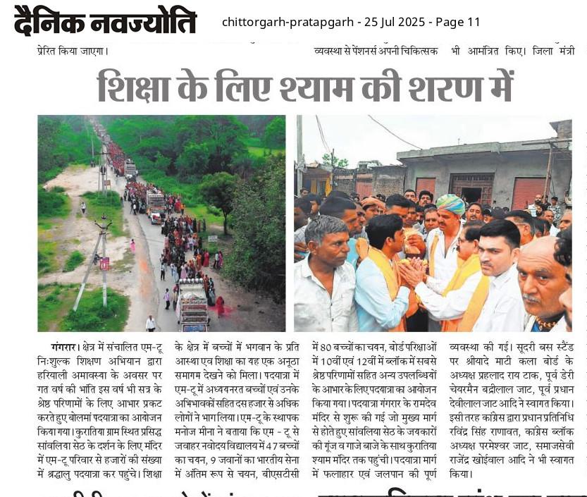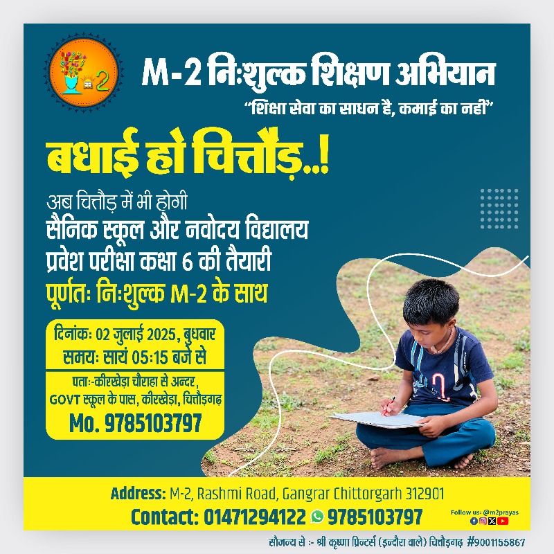 M-2 NISHULK SHIKSHAN ABHIYAN, RASHMI ROAD, GANGRAR, CHITTORGARH 312901
